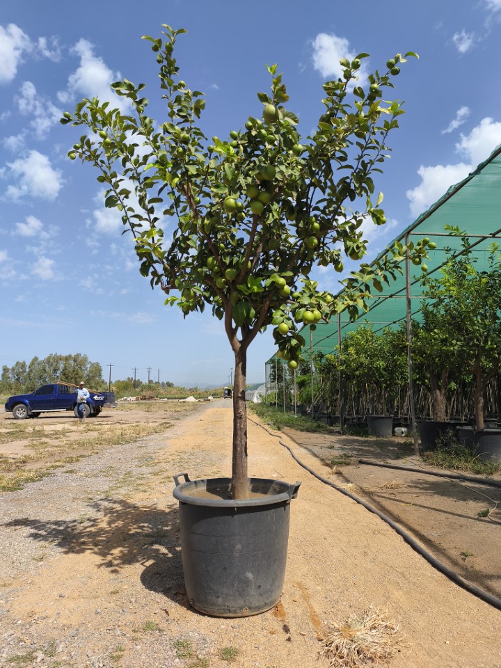 πορτοκαλιές, λεμονιές, μανταρινιές, γκρέιπφρουτ, λάιμ, κιτρολέμονο, κουμ-κουάτ, περγαμόντο και πομέλο, σε διάφορες ποικιλίες και μεγέθη. Διαθέτουμε επίσης δέντρα σε μεγάλα μεγέθη, κατάλληλα για τον καλλωπισμό κήπων και επαγγελματικών χώρων (ξενοδοχεία και χώρους εστίασης).